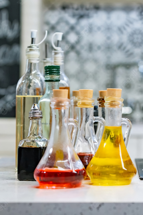 Vinegar is an aqueous solution of acetic acid and trace compounds that may include flavourings. Vinegar typically contains from 5% to 8% acetic acid by volume. Usually, the acetic acid is produced by a double fermentation, converting simple sugars to ethanol using yeast, and ethanol to acetic acid using acetic acid bacteria.