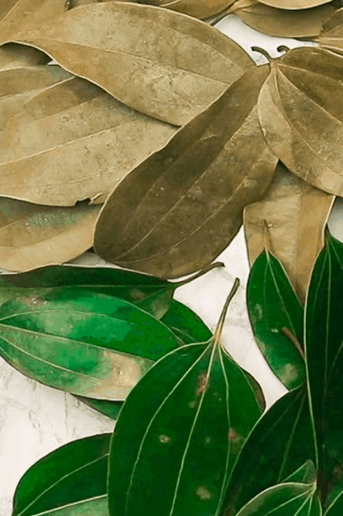 A popular spice used in pickling and marinating and to flavour stews, stuffings, and fish, bay leaves are delicately fragrant but have a bitter taste. It can be used whole, either dried or fresh, in which case it is removed from the dish before consumption, or less commonly used in ground form.