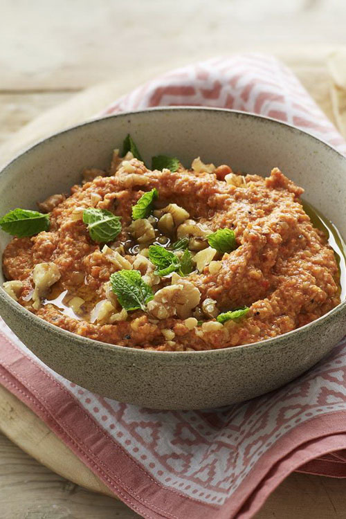 Muhammara is a dip that's sweet, nutty and tangy. it's really quick to whip up with roasted peppers from a jar, but tastes absolutely amazing if you roast fresh peppers on a barbecue or even a gas hob. Serve as part of a mezze with bread or as a sauce for kebabs, grilled meats and fish.