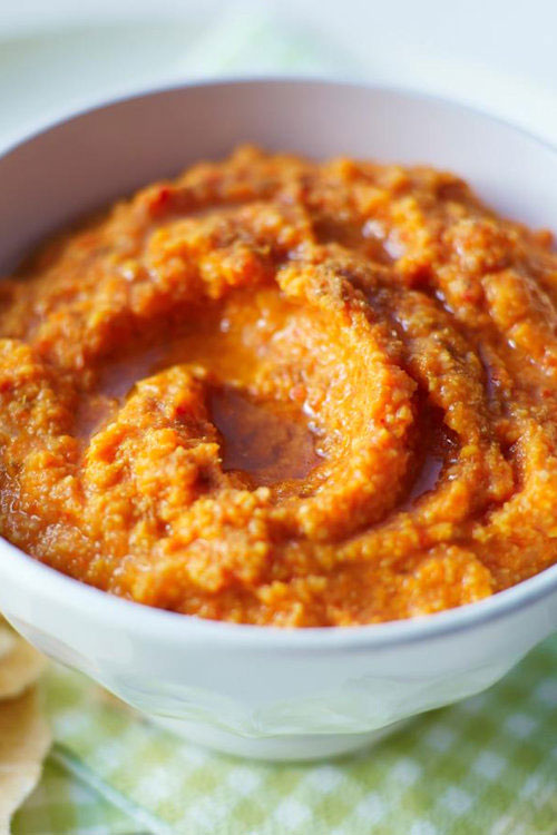 There are no end of varieties of hummus. This one is loaded with sweet roasted red pepper, making it much lighter.