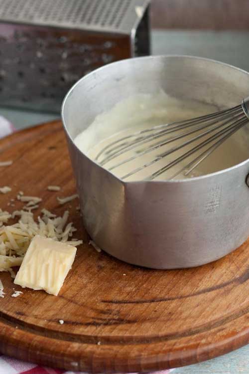 You can easily customise this basic cheese sauce recipe with any bits of cheese you have in the fridge that melts well. You can also add a teaspoon of mustard at the end to perk it up.