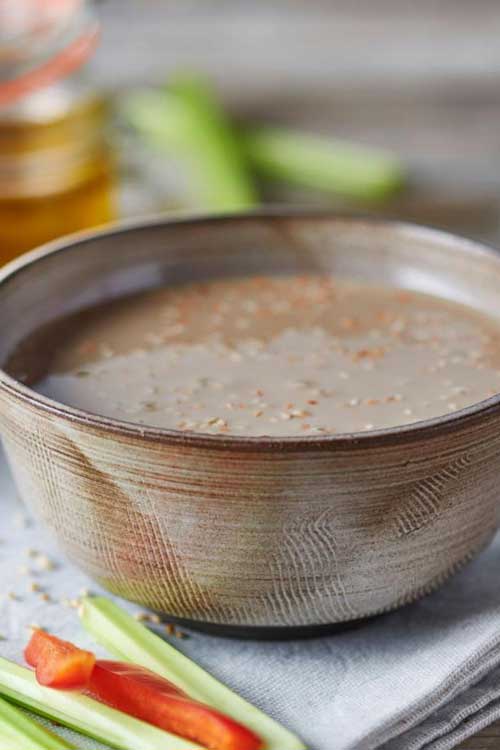 If you have sesame seeds in the cupboard now is the time to get creative! This savoury sauce is vegan, gluten-free and dairy-free and can be used in cakes, as a dip for crudités and so much more.