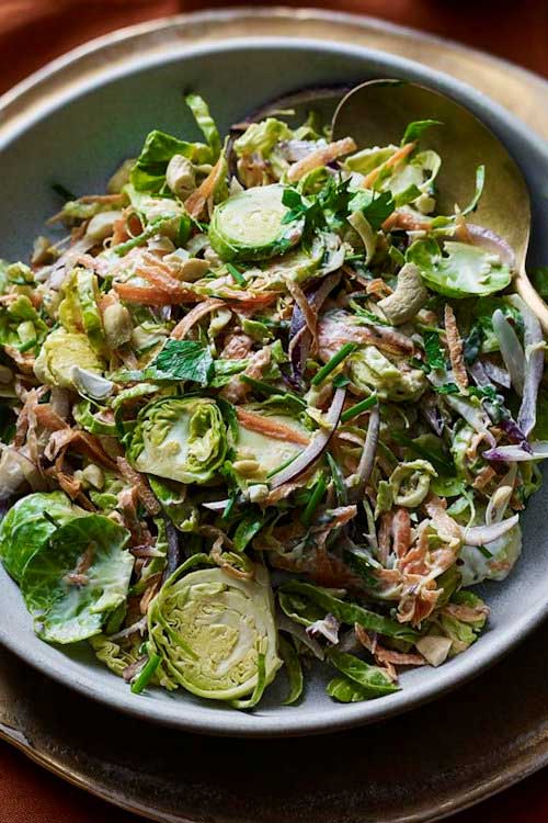 Brussels sprouts are delicious raw and can be used just like cabbage in a zesty, creamy, crunchy coleslaw.