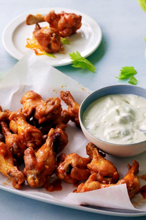 Sticky, spicy buffalo wings with blue cheese dip. These easy chicken wings are perfect for any party.
