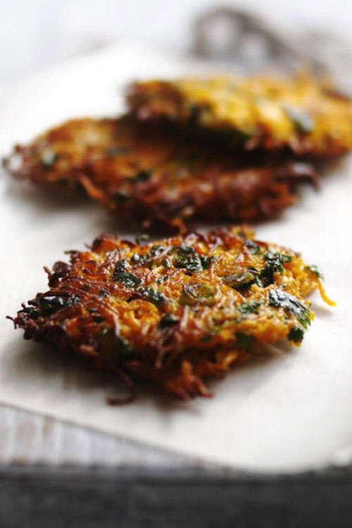 These carrot fritters are perfect for a quick lunch, especially with a watercress salad on the side. They combine the classic carrot and coriander flavours into a hot, crisp alternative to soup.
