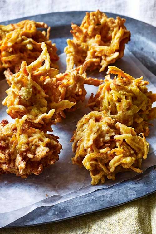 Golden, crisp bhajis that will help you use up leftovers. These simple, spiced bites are delightful served with raita or chutney.