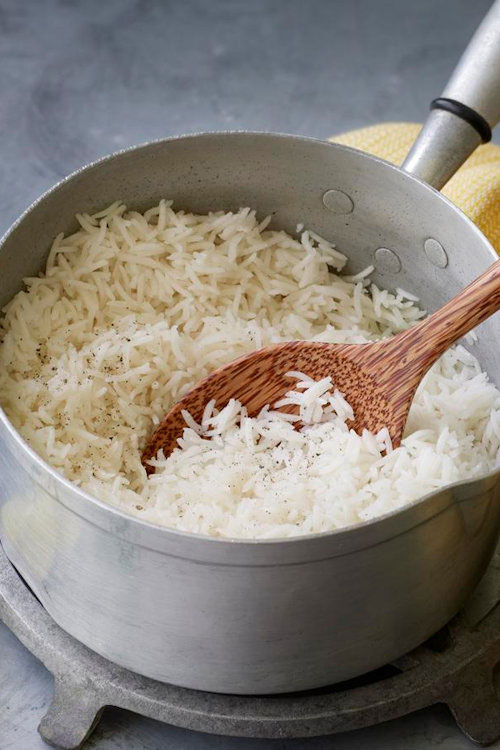 At this point, turn the heat off and leave the rice to rest for 10 minutes, keeping the lid on. Use a wooden spoon to fluff up the rice before serving. Add salt, sugar and pepper to taste.