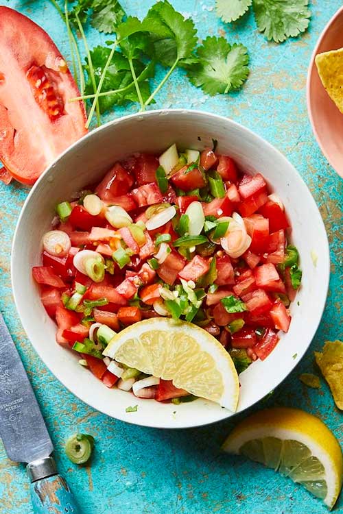 Zesty, fresh and juicy – this easy tomato salsa is a great way to use up very ripe tomatoes. Perfect with tortilla chips or spooned liberally over nachos.