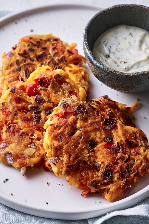 Inexpensive and quick to prepare, these delicious sweet potato röstis work brilliantly with a salad, as a burger filling or as a lunch box snack.