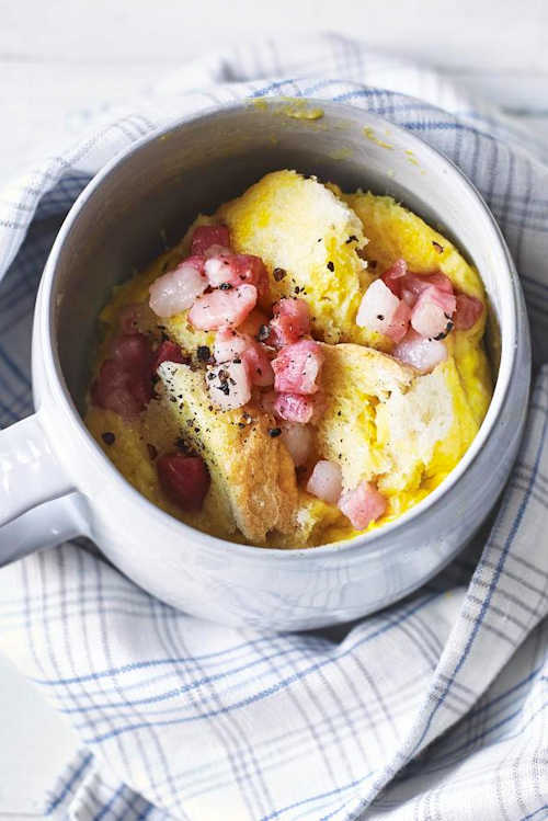 Savoury eggy bread in minutes. You can even make this the night before, ready to pop into the microwave in the morning.