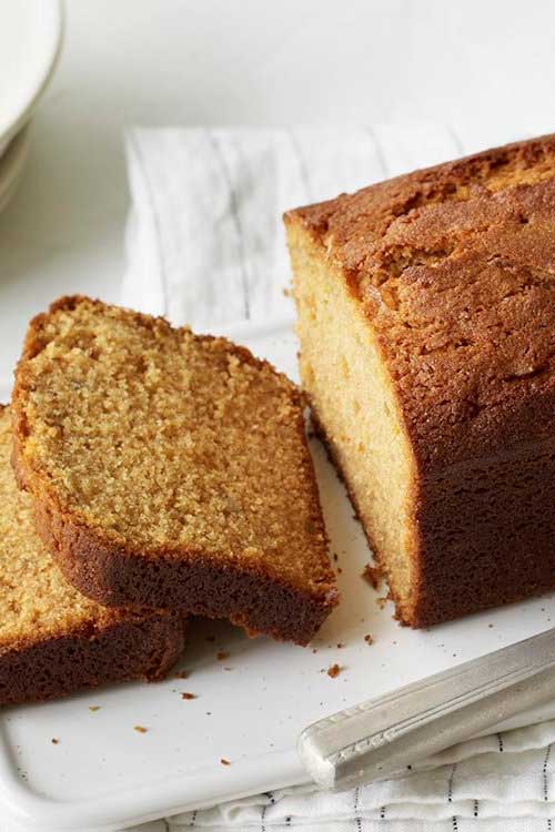 With loaf cakes, the difference between a nicely moist crumb and slightly dry is a matter of minutes and the timing will depend on your oven. Test 5 minutes before the cake is due to be cooked and keep testing every 4–5 minutes.