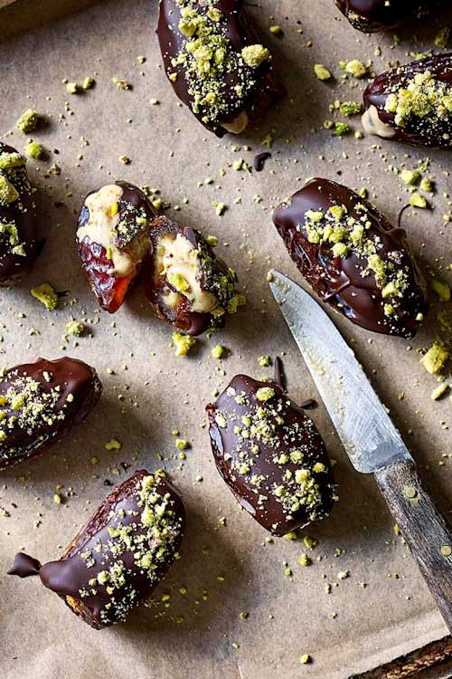 This recipe elevates the simple date by stuffing them with nutty tahini and dipping them in chocolate. These are fantastic with coffee after dinner, too.