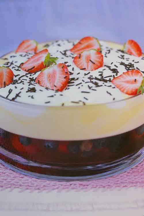 This delicious trifle combines jelly, berries, low fat custard and a creamy topping made with fromage frais and quark.