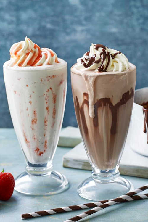 A luxurious milkshake makes a super-fun drink or dessert. Choose from rich dark chocolate, strawberry or a simple vanilla.