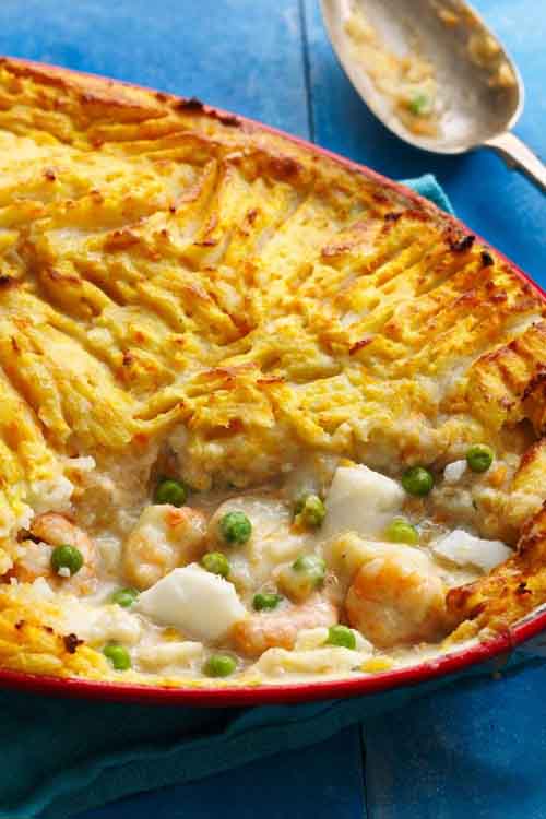 This healthier fish pie is easy to make thanks to its shortcut white sauce. The key to the best flavour is using good-quality fresh stock.
