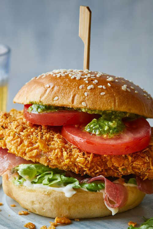 Pimp your BLT with a C for chicken coated in spicy cornflakes and cooked in the air fryer, all sandwiched in a brioche burger bun.