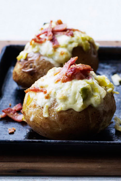 Baked Potato with Bacon, Taleggio and Leek