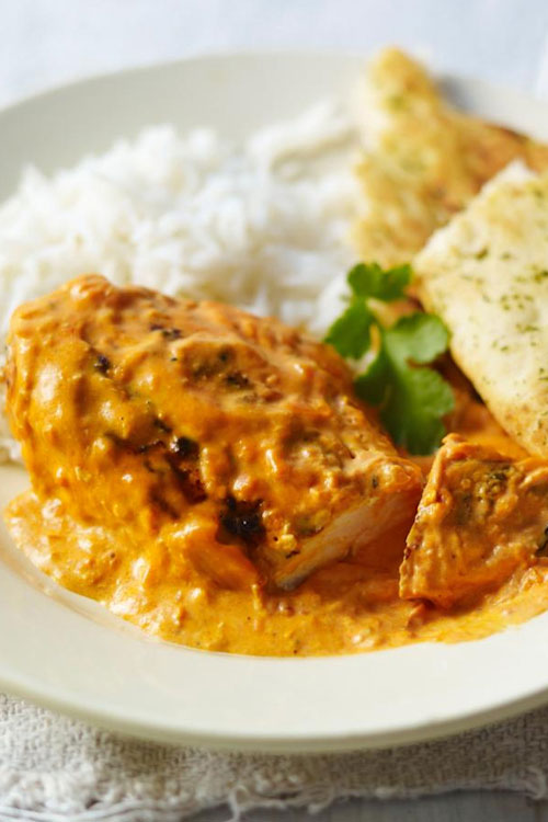 To serve, place the butter chicken breasts onto serving plates and drizzle over the sauce. Sprinkle over the coriander.