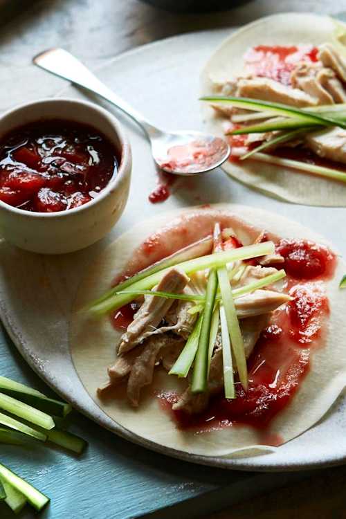 This is a lower-calorie version of the classic Chinese dish that no one can resist – using chicken instead of duck lowers the fat content. Enjoy these pancakes at the weekend as a special treat.