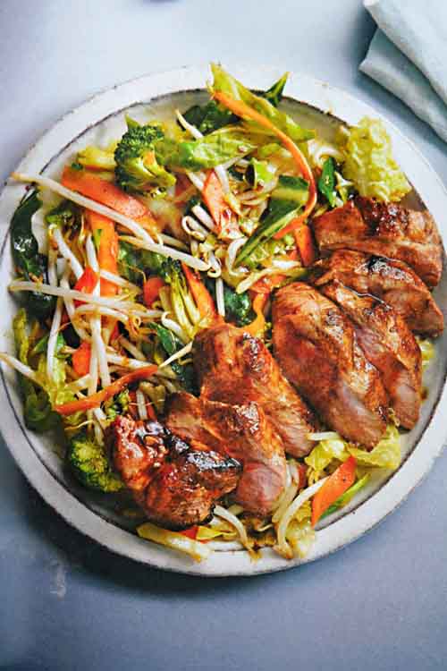 Duck goes fantastically with Asian flavours and in this feast it's cooked with five-spice powder, soy sauce and for a hint of sweetness - a little honey.