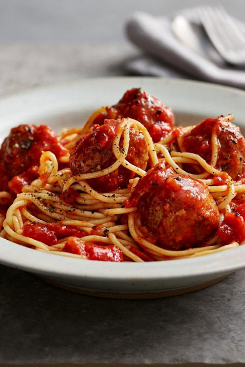 These meatballs are super easy to make, top them with a simple tomato sauce and stir in some spaghetti for a quick midweek meal.