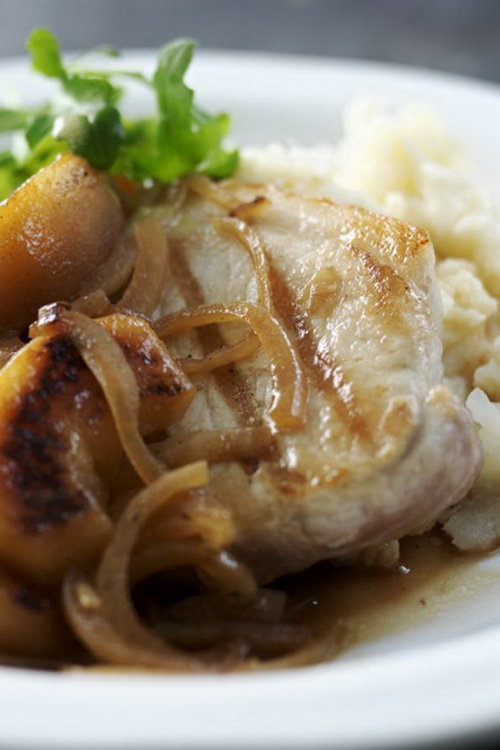 Pork Chops with Celeriac Mash and Apple & Ale Gravy