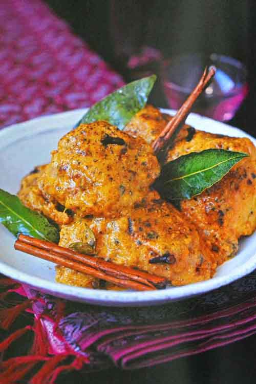 This chicken dish was once served in the royal Mughal palaces of India. Cooked in yogurt with spices, it is a straightforward yet delicious dish.