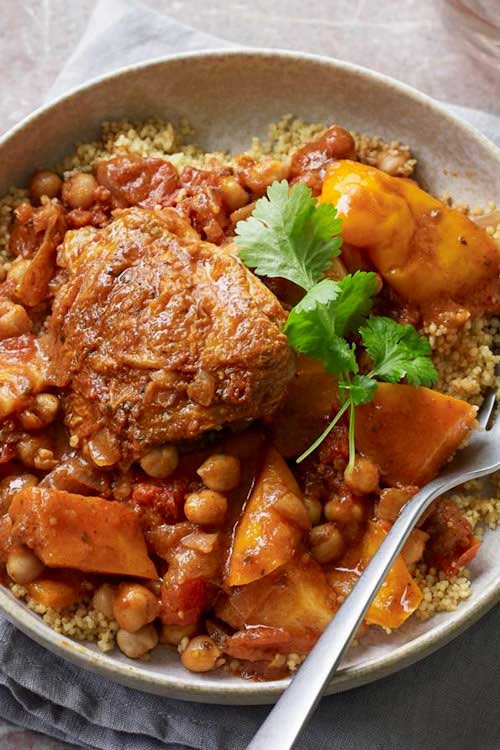 This healthy slow cooker tagine is the friend you want to see at the end of the day. You can even prepare it the night before and pop it in the fridge (in the slow cooker bowl) ready to cook in the morning. Serve with brown rice or whole wheat couscous.