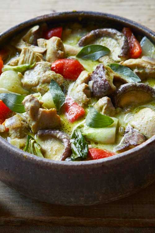 Once you’ve made the curry paste (just throw everything into a blender) this Thai green chicken curry couldn’t be simpler: think stir-fry, but with a fragrant coconut sauce.