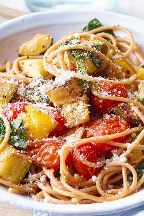 This fresh-tasting vegetable pasta is ready in about 15 minutes and is perfect for a quick healthy lunch or dinner.