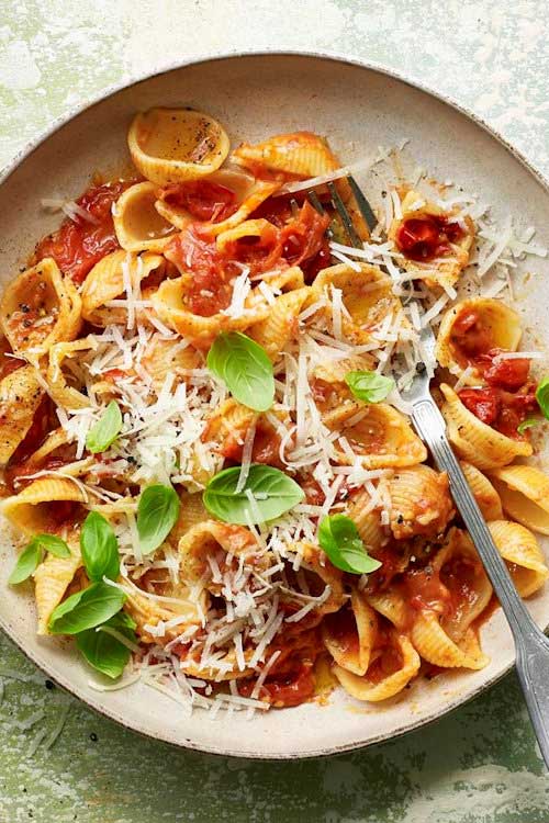 Pasta and balsamic vinegar in the cupboard? Cherry tomatoes, butter and cheese in the fridge? Then you’re all set to make this delicious tomato pasta recipe.