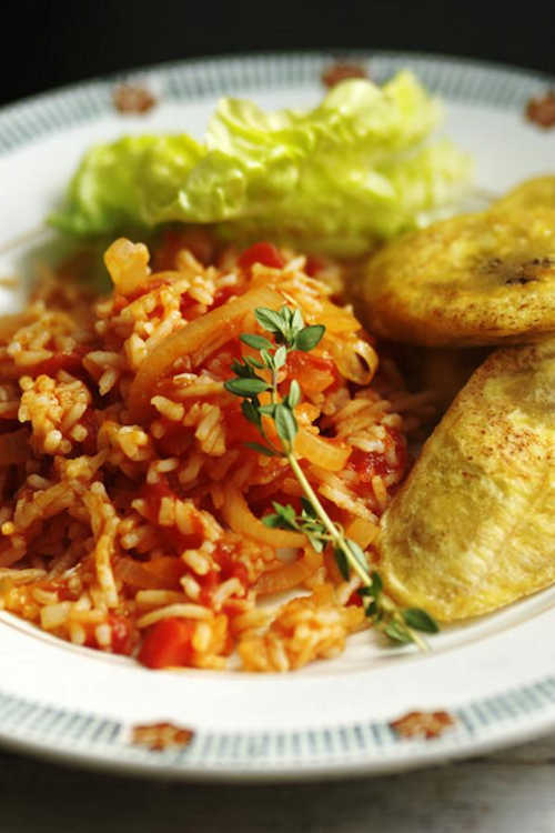 Jollof rice is found throughout West Africa and is thought to be the origin of the Cajun dish, jambalaya. Serve with fried plantains and a crisp green salad.