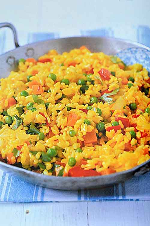 Traditional paella contains chicken and seafood, but this version uses a colourful mixture of vegetables instead. Saffron and smoked paprika add an exotic flavour to this substantial rice dish.