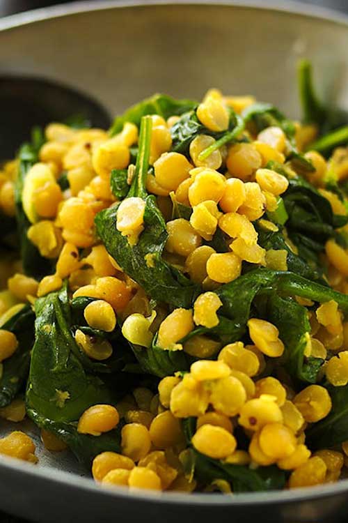 When the daal is cooked add to the pan and stir in the spinach and spring onions.
