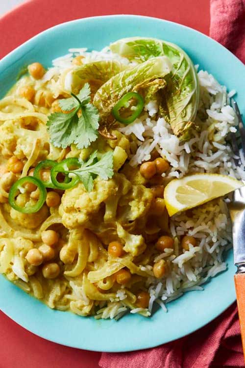 This vegan chickpea and cauliflower curry really is faster to make than ordering a takeaway, and it’s bursting with flavour and richness from the coconut milk. The flavours will improve overnight, so if you’re cooking for one you can look forward to an even tastier dinner the next day.