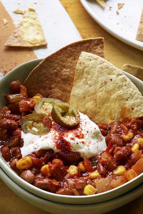 Spoon the stew into warmed bowls, then top with the jalapeños, soured cream and a pinch of smoked paprika. Serve with homemade tortilla chips for dipping.