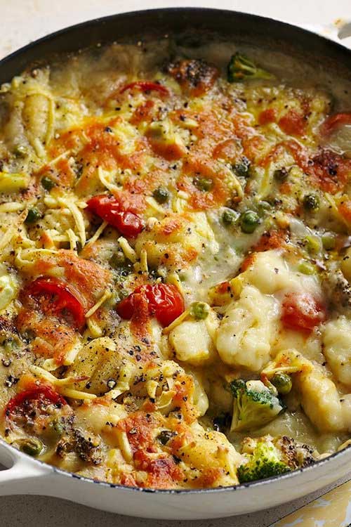 A gnocchi bake is a super comforting and easy one-pan family dinner. A bit like a pasta bake just using a bag of gnocchi and some veggies straight out of the freezer.