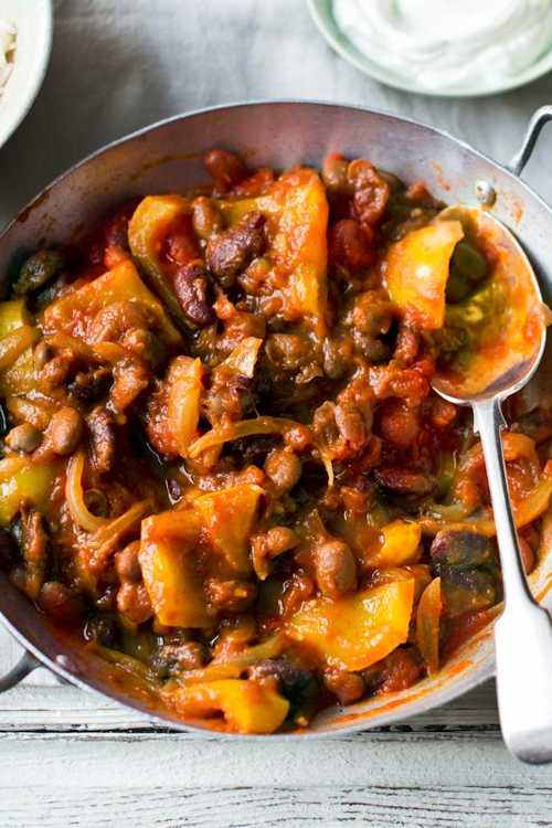 A simple, vegetarian, spiced bean stew makes a quick and filling midweek dinner.