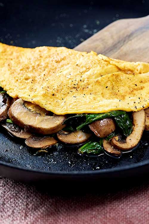 A mushroom omelette is a perfect protein-packed meal that you can rustle up in no time. Spinach and paprika give extra fibre and flavour.