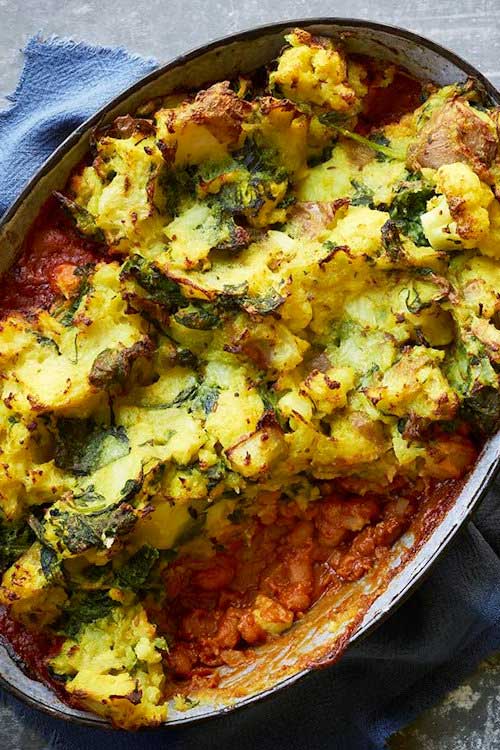 Spiced potato, cauliflower and spinach makes a tasty topping for this Indian-inspired shepherd’s pie. This comforting vegetarian dish is sure to become a family favourite.