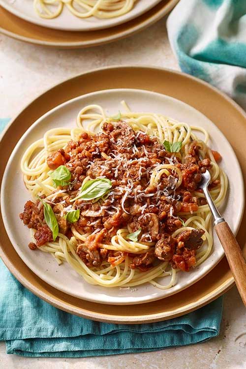 You can use any tinned lentils for this bolognese. Sachets of lentils work too (although they are more expensive), or add tinned beans or chickpeas instead if you have some handy.