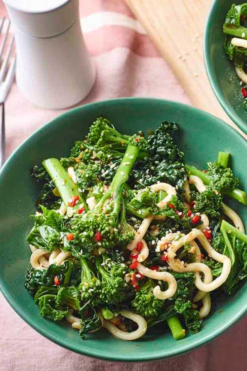 Make that green veg languishing in the back of the fridge into a quick, flavour-packed noodle salad with a chilli and soy dressing.