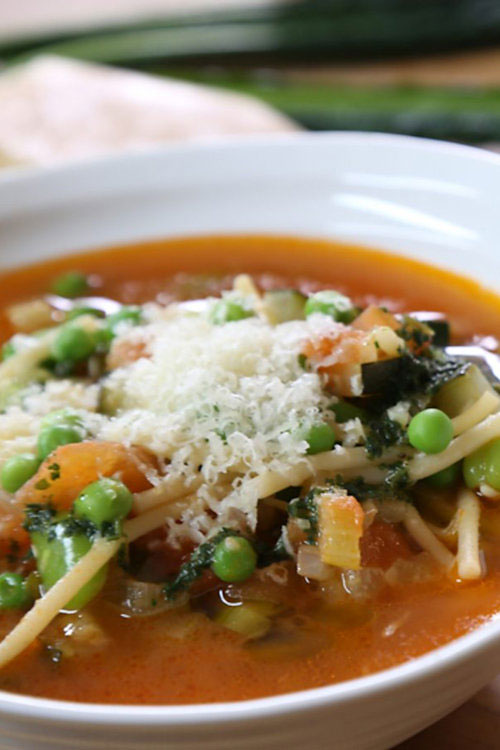 This vegetable soup makes a wonderful light dinner in the summer time with some good-quality bread.